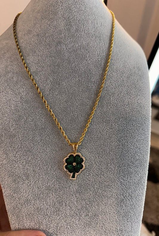 Dije de trébol con torzal de 3 mm golden