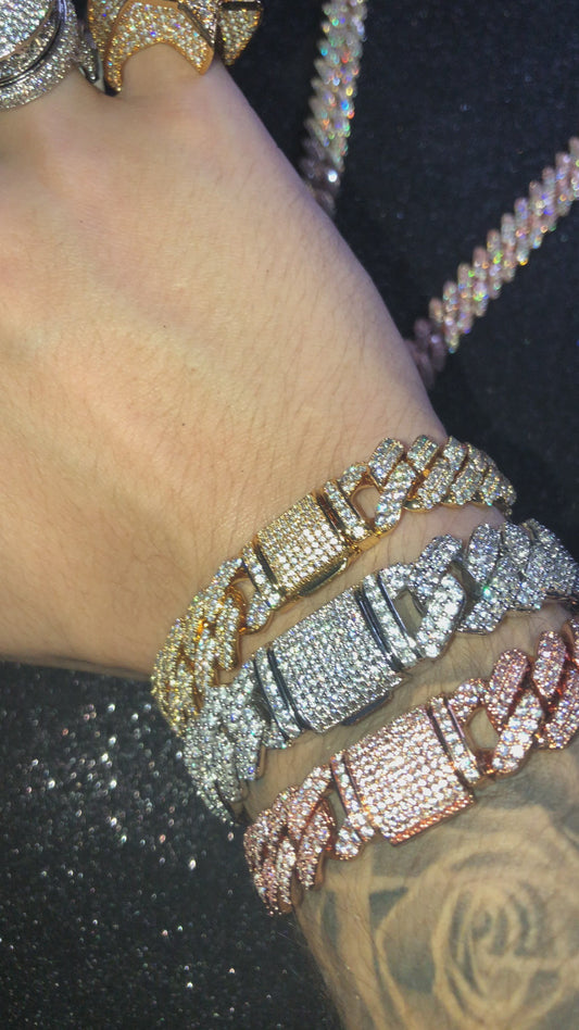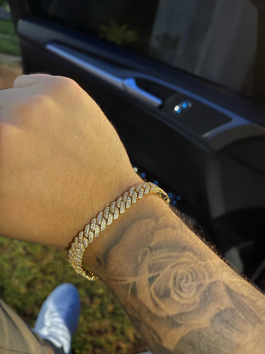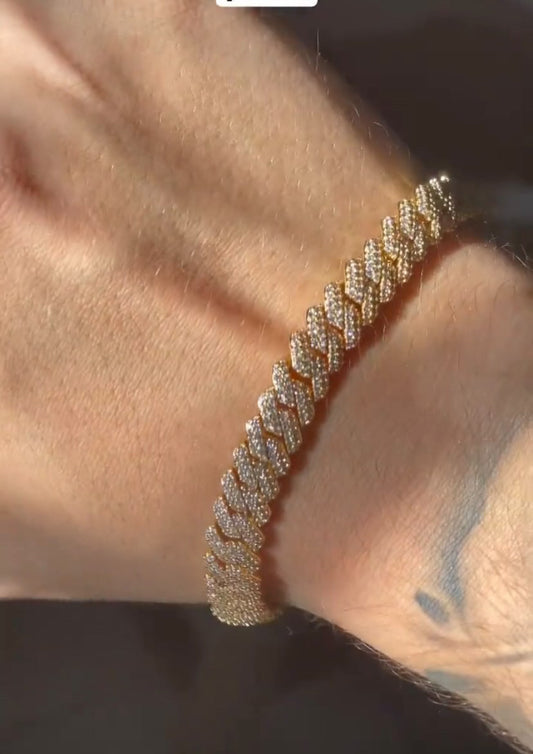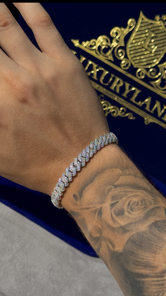 Brazalete 8 mm cuban prong whitegold plated 18k (22 micras)