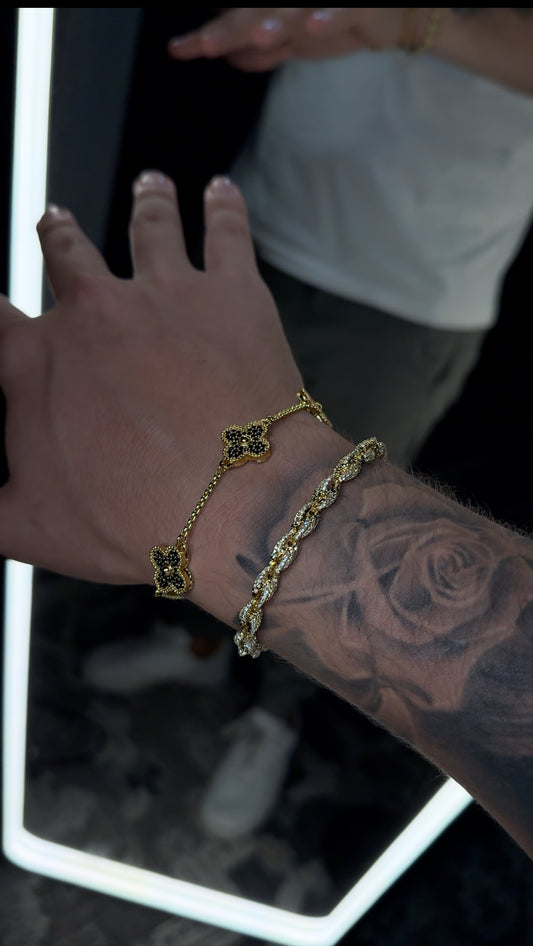 Brazalete VC. black golden and black gemstones full iced (colección 2025)