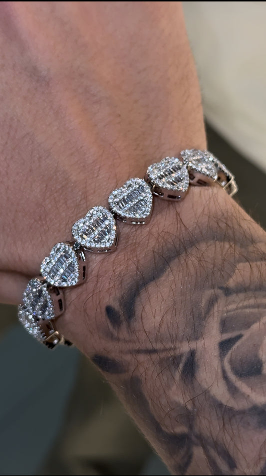 Brazalete de corazones pink heart white gold 18k plated full iced 2025