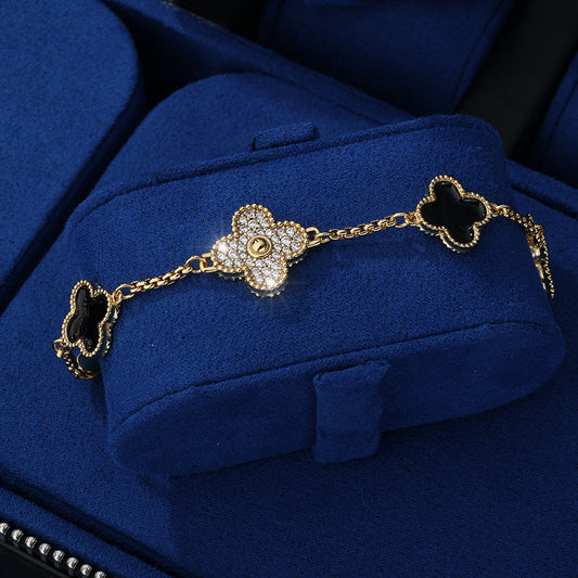 Brazalete VC. black golden and black gemstones full iced (colección 2026)