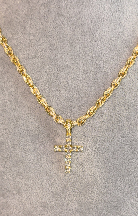 Cadena rope torzal 6 mm con dije de cruz dorada 18k 22 micras