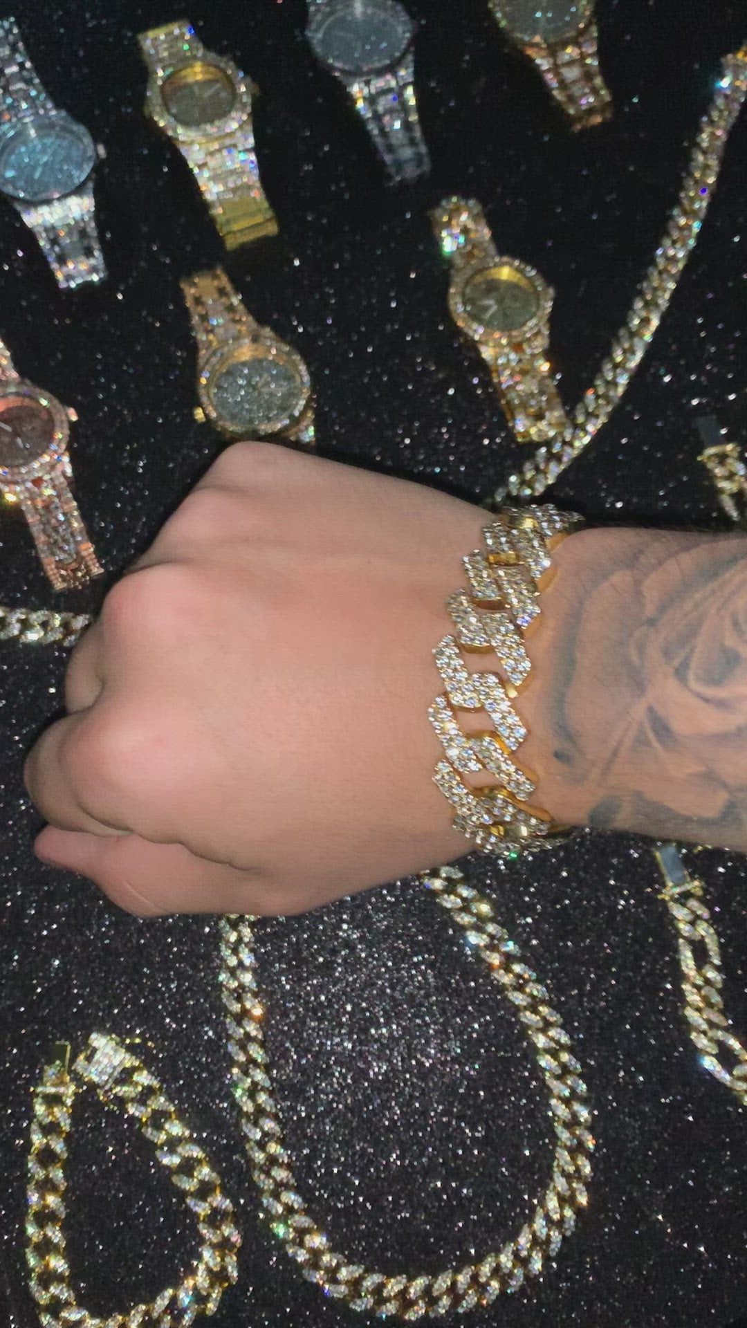 Brazalete corte cubano cuadrado Iced out, oro laminado 18k (4 micras)