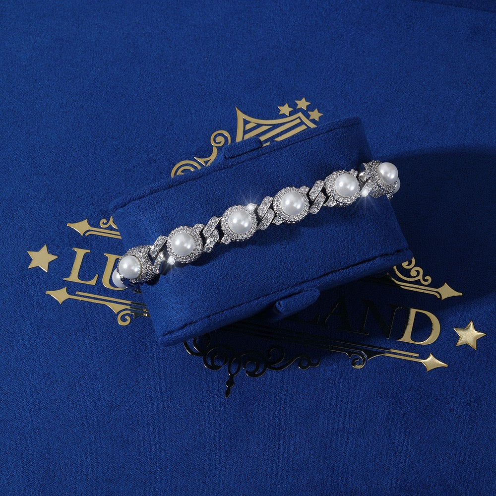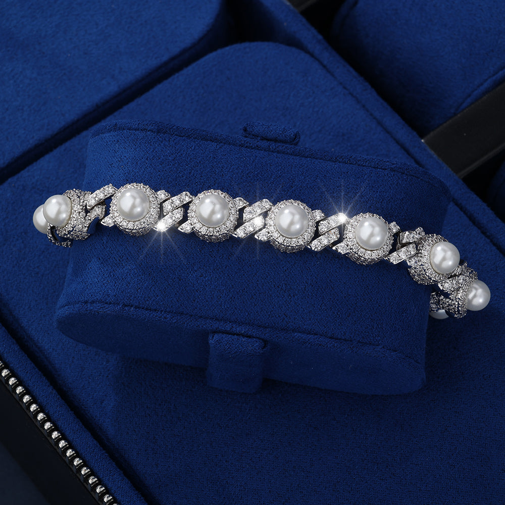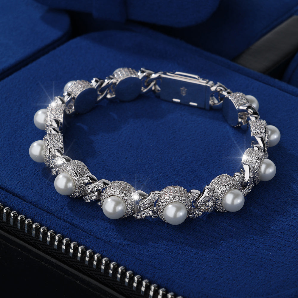 Brazalete cubano link whitegold plated con perlas naturales incrustadas 2025