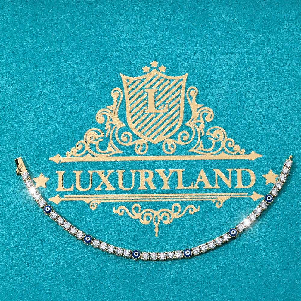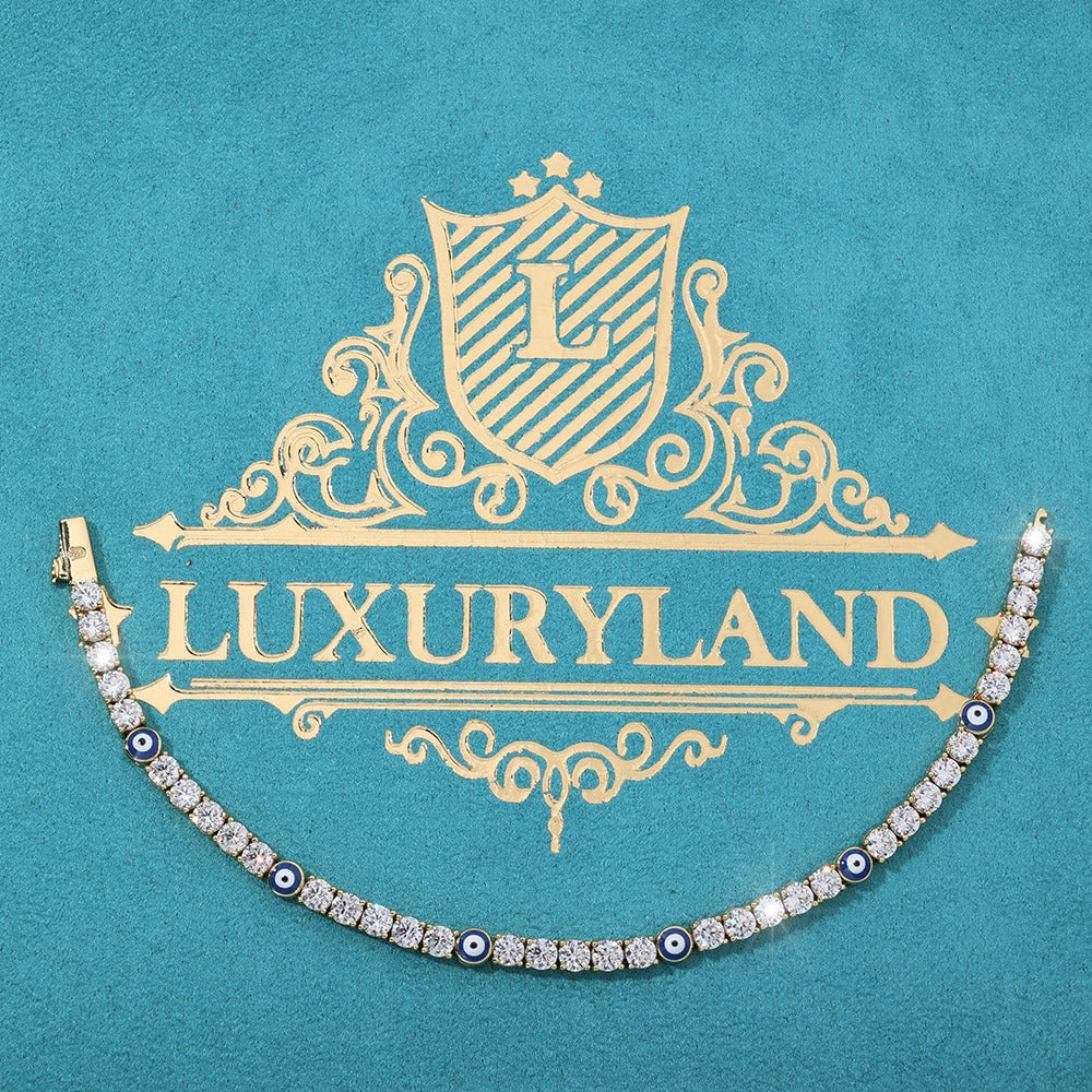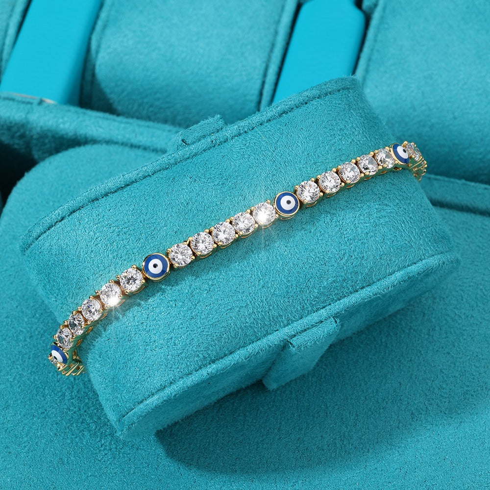 Brazalete tenis de ojo turco 5 mm Full Ice, broche de caja en laminado en oro de 18 kilates en 22 micras.