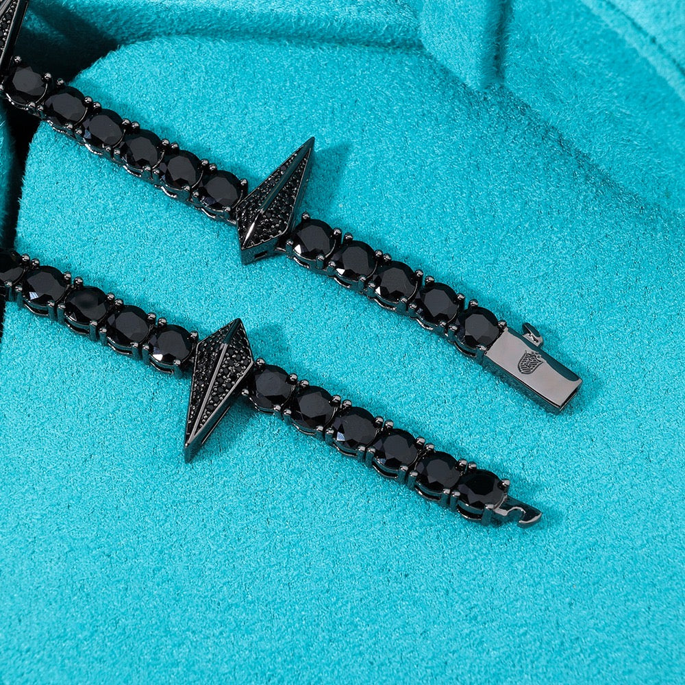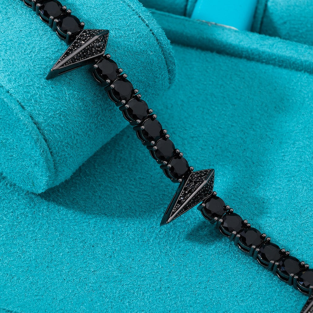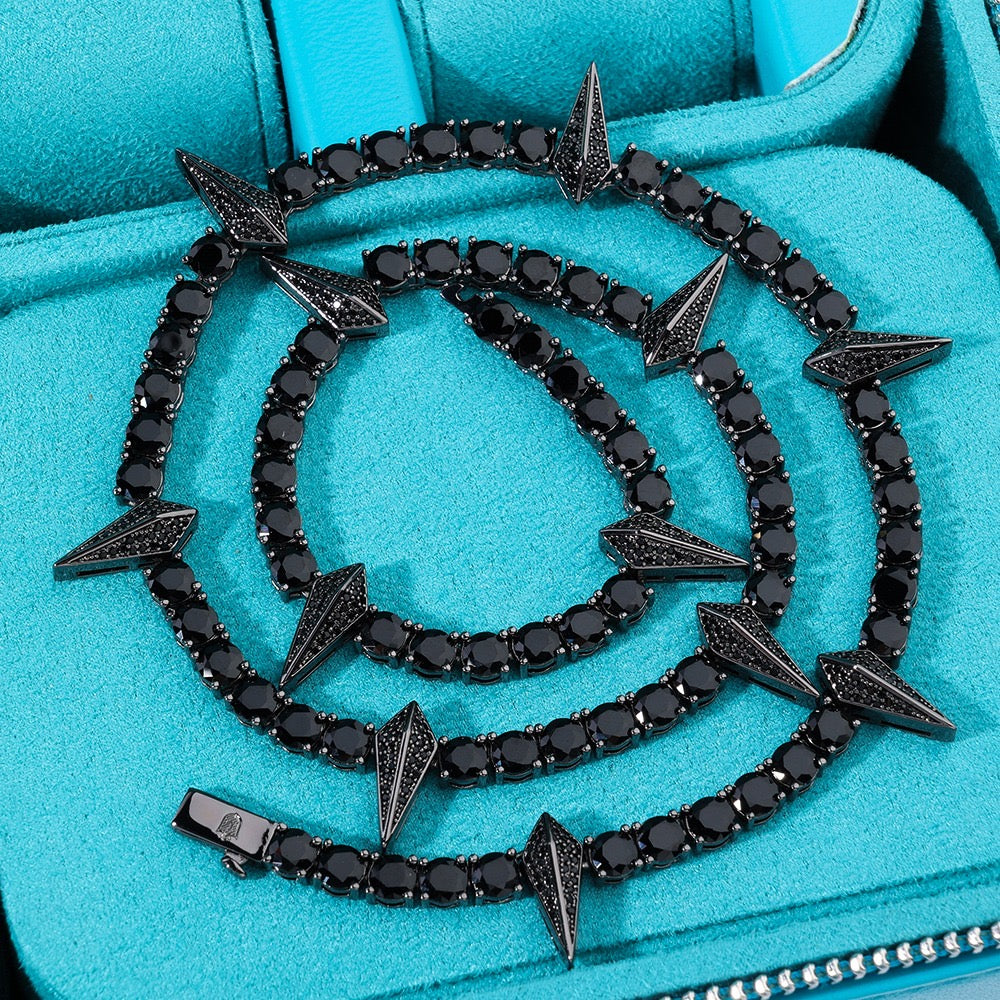 cadena black Panther premium quality con incrustaciones de circonita cubica (CZ) swiss cubic shape. Laminado de oro blanco 18 quilates. 50 cm de largo.