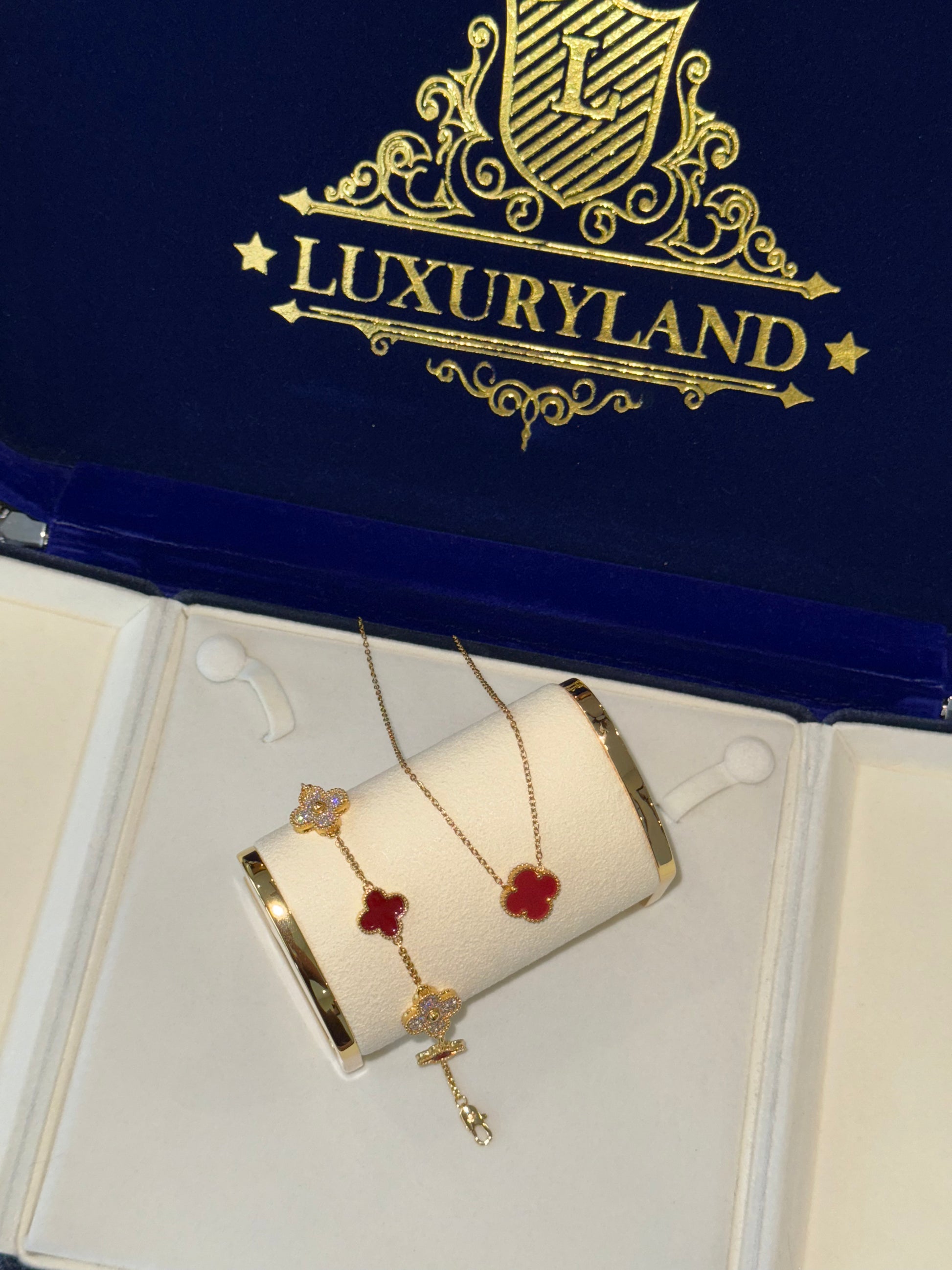 CONJUNTO cadena y brazalete VC. golden x red