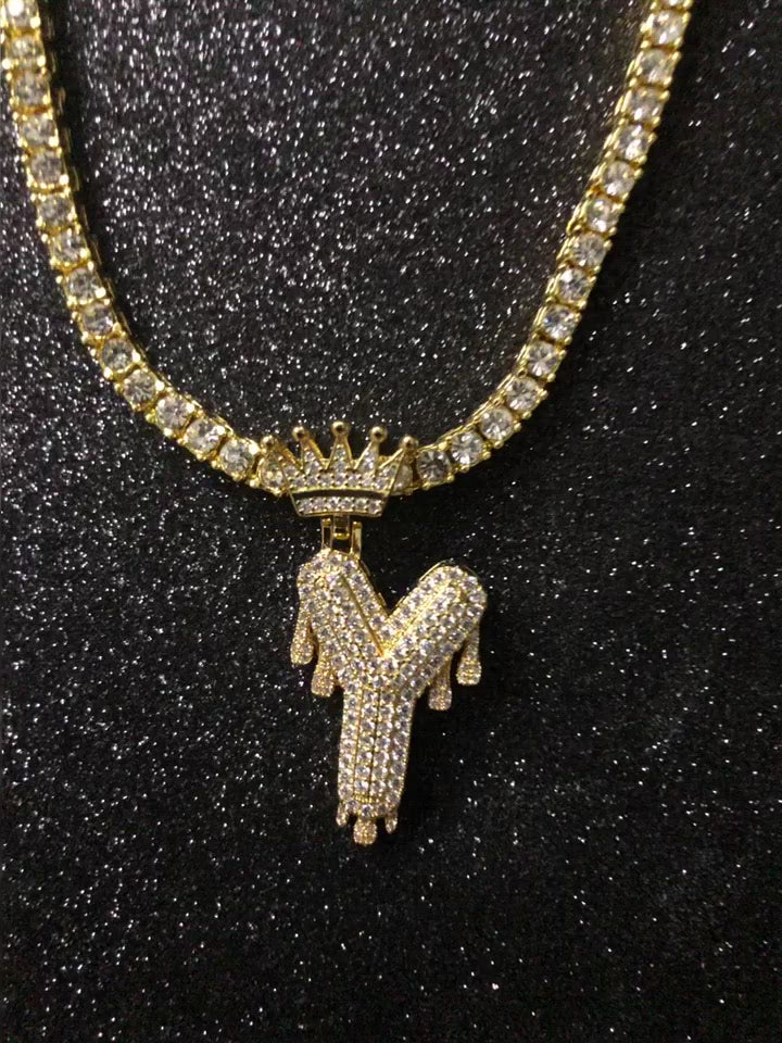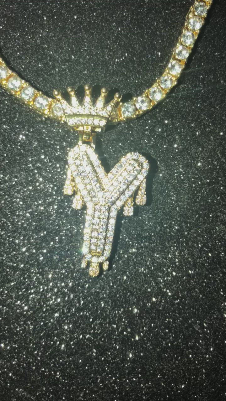 Letra de "Y", con torsal incluido, laminado de 18 k con incrustaciones de circonita cubica (CZ) diamonds.