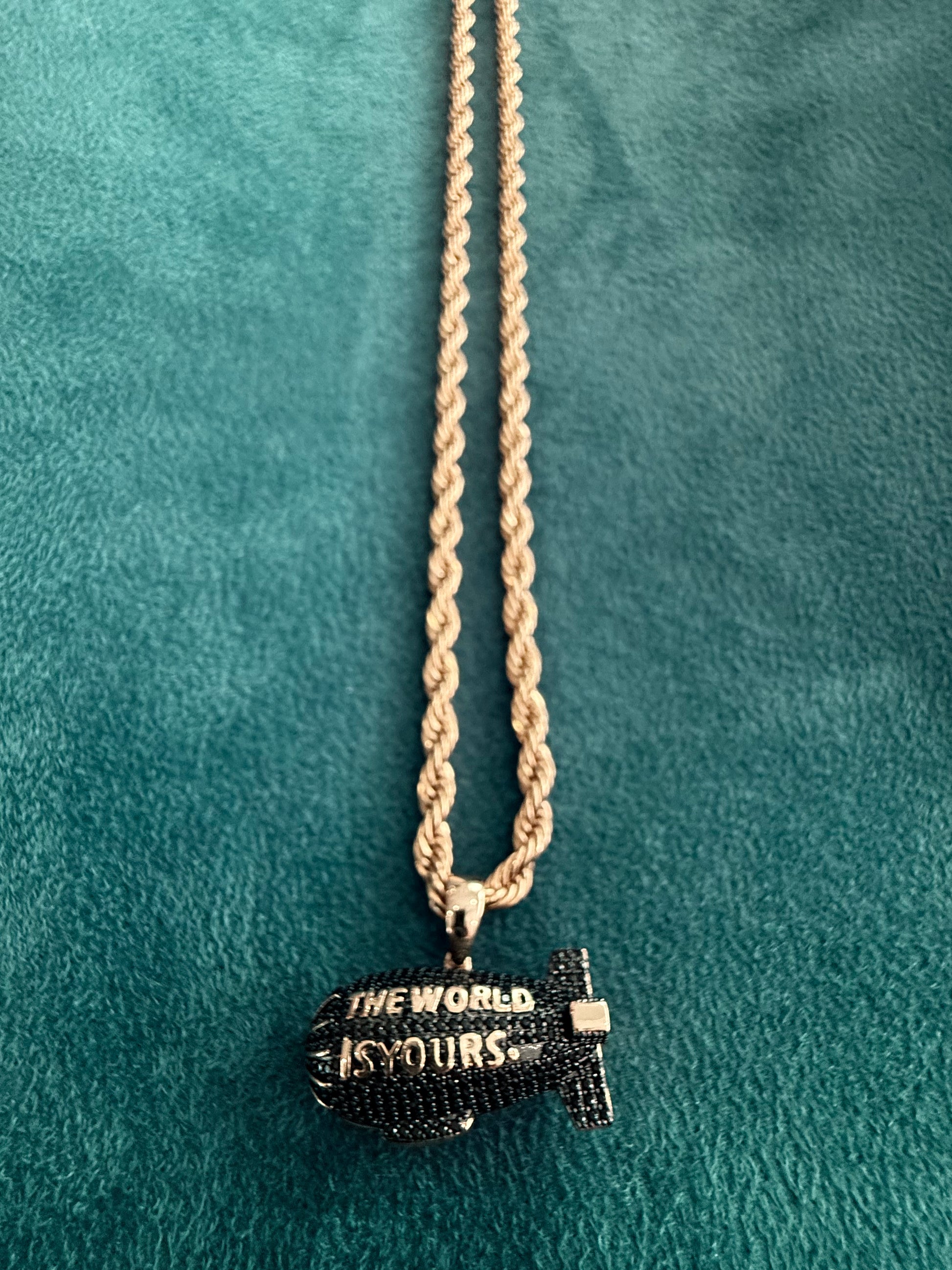 Promo buen fin DIJE DE “the WORLD is YOURS” con torzal de 5 mm.